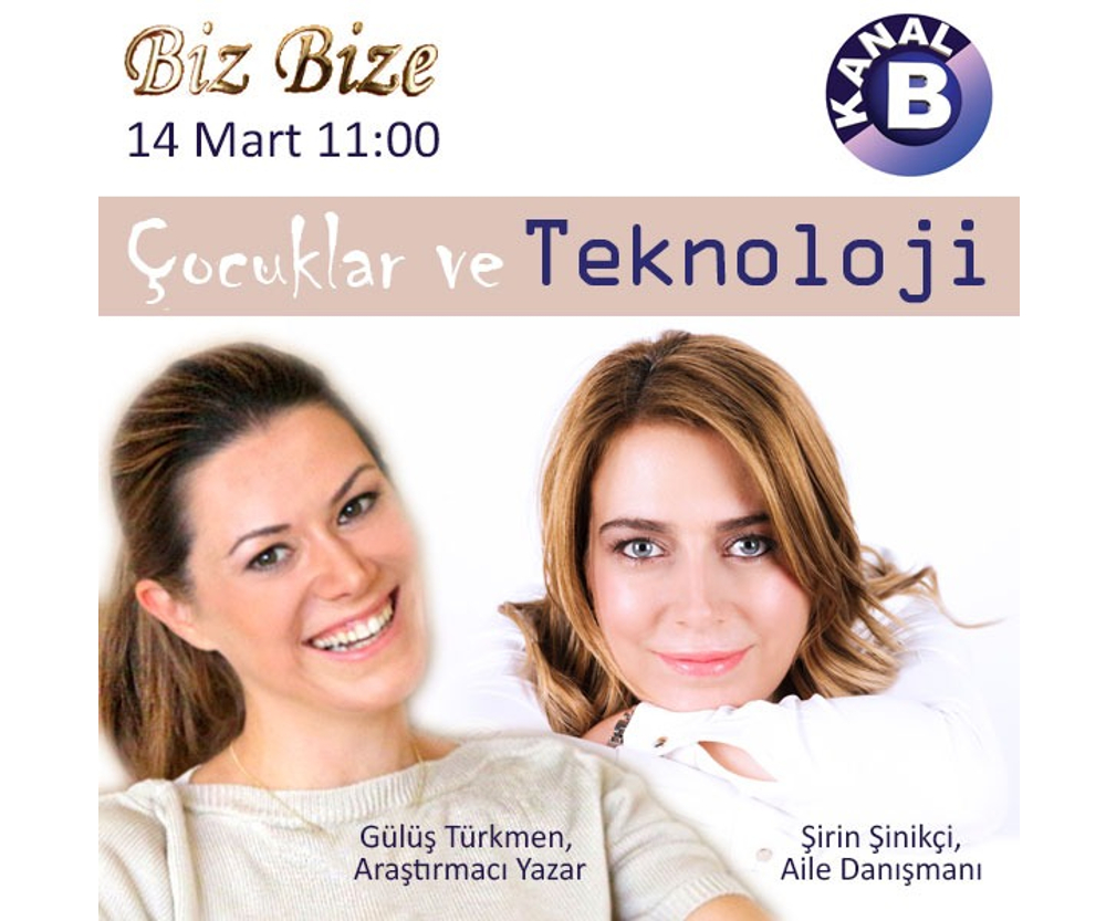 Araştırmacı yazar Gülüş Türkmen’le birlikte Kanal B kanalının sevilen programı Biz Bize’ye konuk olarak Çocuk ve Teknoloji konusununu konuştuk.